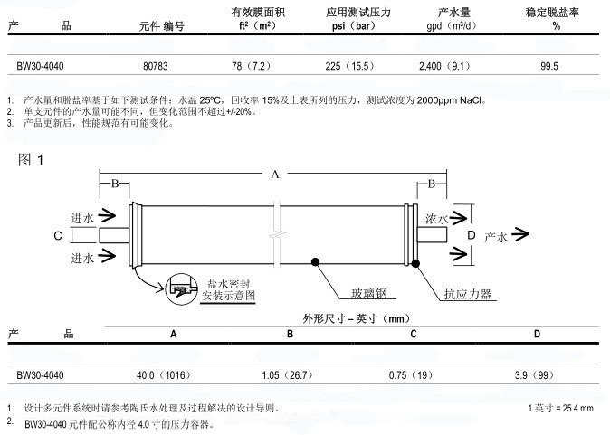 陶氏 BW30-4040 反滲透膜性能特點(diǎn):