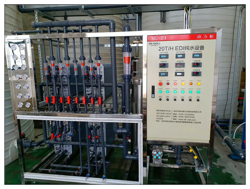 EDI設(shè)備參數(shù): 型號:EK-Z-20T 設(shè)備產(chǎn)水量:20m3/H 膜塊型號:EK-5000 膜塊數(shù)量:4臺 用途:產(chǎn)品清洗用水 控制方式:自動 工藝流程:中水→UF→一級RO→二級RO→EDI→變頻供水 ? ? ??